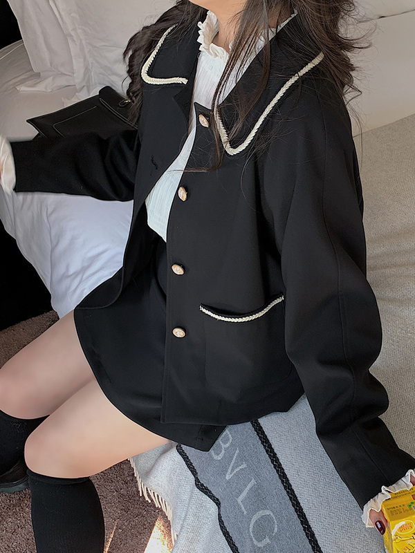 黑色洋氣小香風套裝女春季
